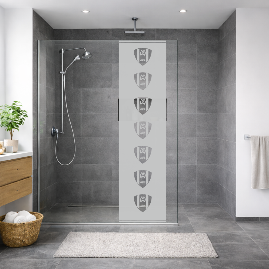 Sichtschutz – Im Angebotsbild ist die Glasdekorfolie grau dargestellt und bietet an diesen Stellen Blickschutz. Bei den ausgeschnittenen Bereichen des Motivs bleibt die Scheibe sichtbar.
